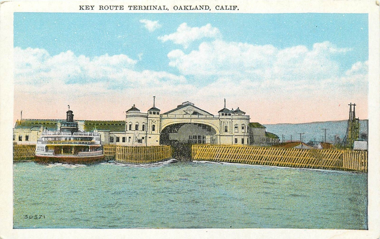 The grand Key Route Terminal, as rendered on a circa-1915 postcard. (Unknown Author) |