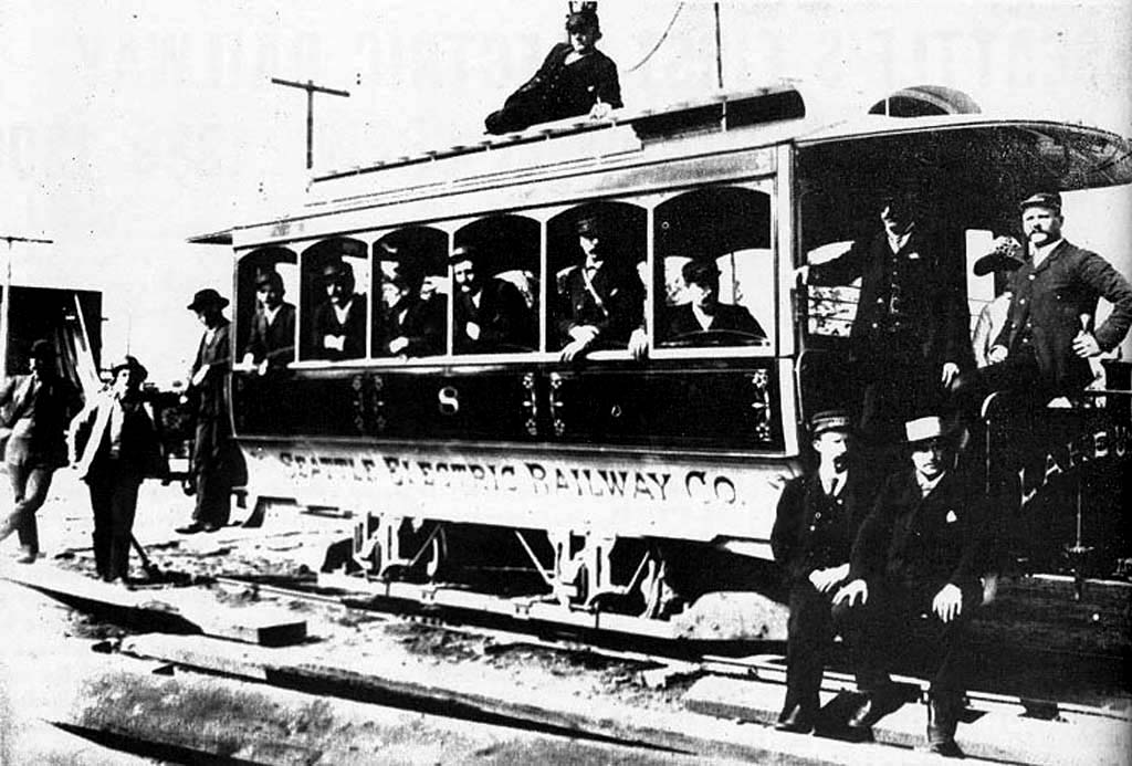 A 1901 Seattle Electric Railway car, showing off its high windowlines and shielded wheels. (Seattle Municipal Archives) |